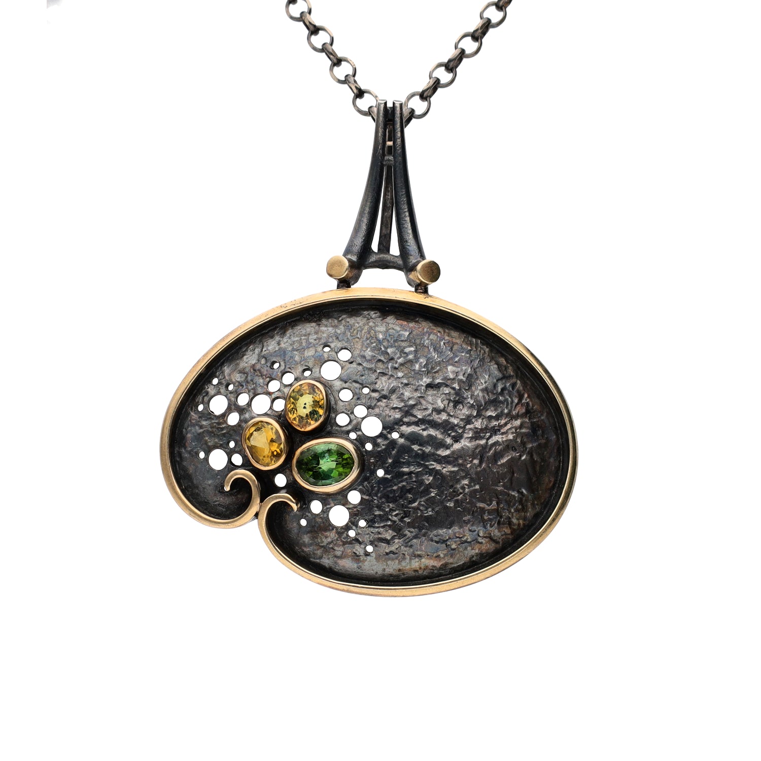 The Bora collection showcases a variety of handcrafted rings, pendants, earrings, and cuffs. The designs, influenced by Mediterranean culture, have their roots in centuries old traditions. Part of their appeal comes from the sense that one is bringing a beautiful history to new life by wearing a piece of jewelry. A masterful balance of strength and delicacy, the collection is handcrafted out of robust semi - precious and precious stones set in oxidized 925 sterling silver, accented with bronze or gold.