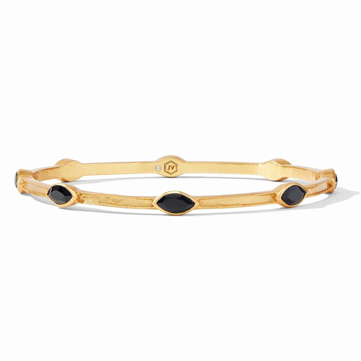 Julie Vos 24K Gold Plated Monaco Bangle Bracelet with Obsidian Black Stones, Small