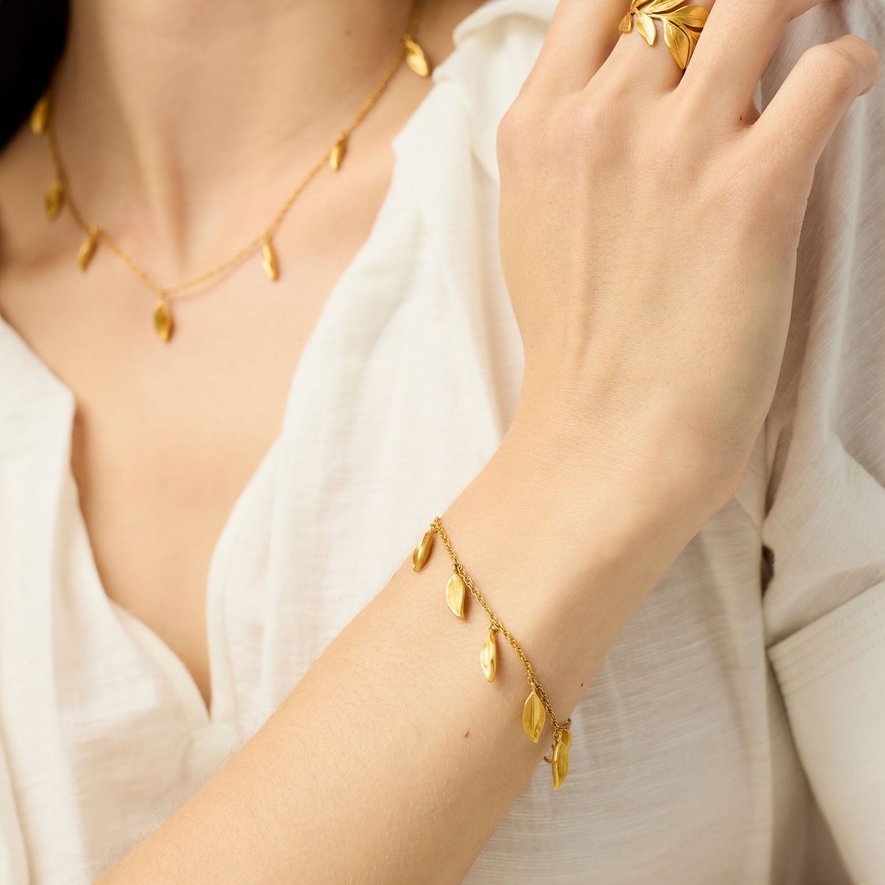 Julie Vos' jewelry is designed and handcrafted to the standards of fine jewelry. Some products feature semi-precious stones, pearls, and/or imported glass. Each piece is handset in 24k gold plate over nickel-free brass and sealed to prevent tarnish.