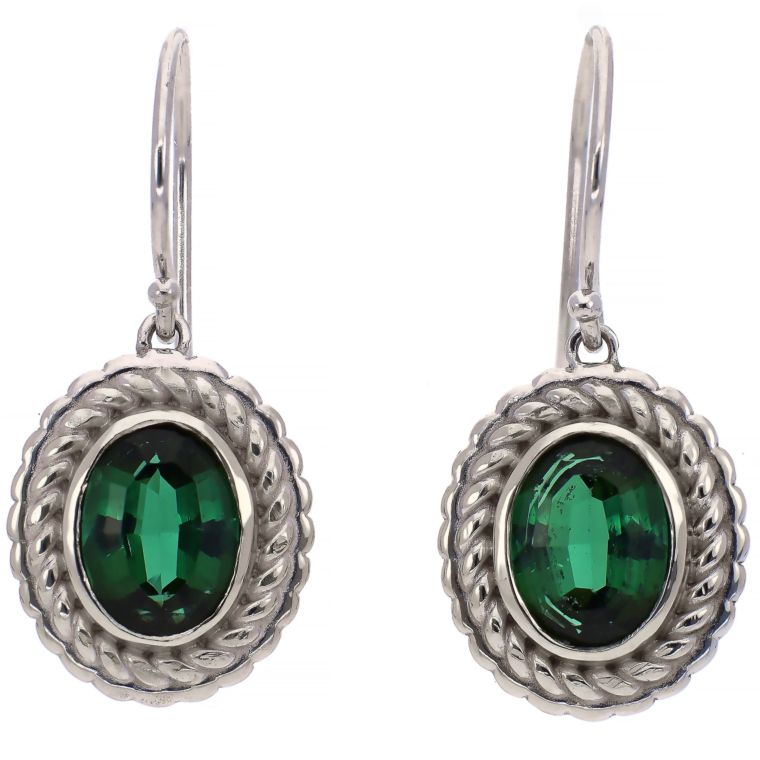 14K White Gold Oval Green Tourmaline Earrings