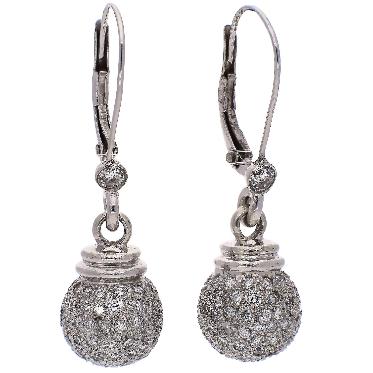 14K White Gold Pavé Diamond Ball Drop Earrings