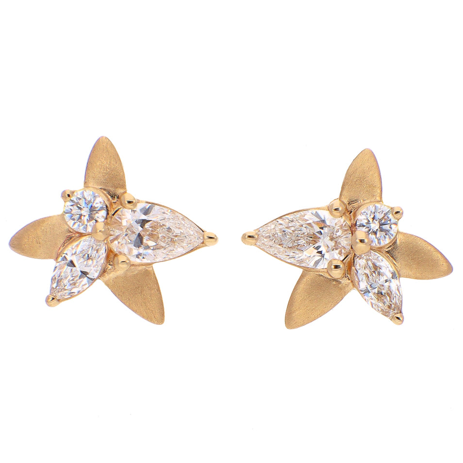 Noam Carver Fine Jewelry 14K Yellow Gold Diamond Stud Earrings Floral Motif