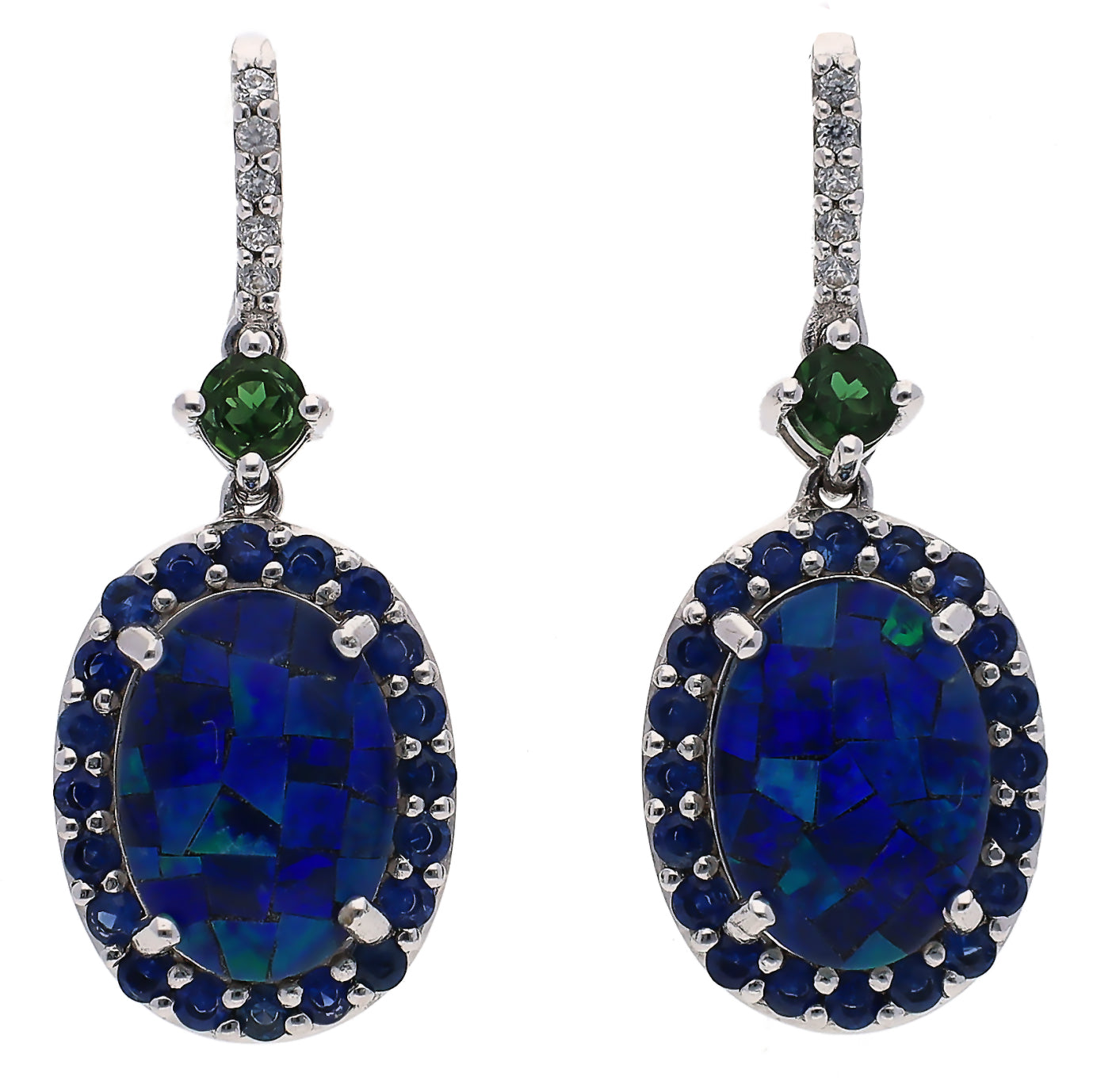Sterling Silver Opal and Tsavorite Garnets, Sapphires, and Topaz Dangle Earrings