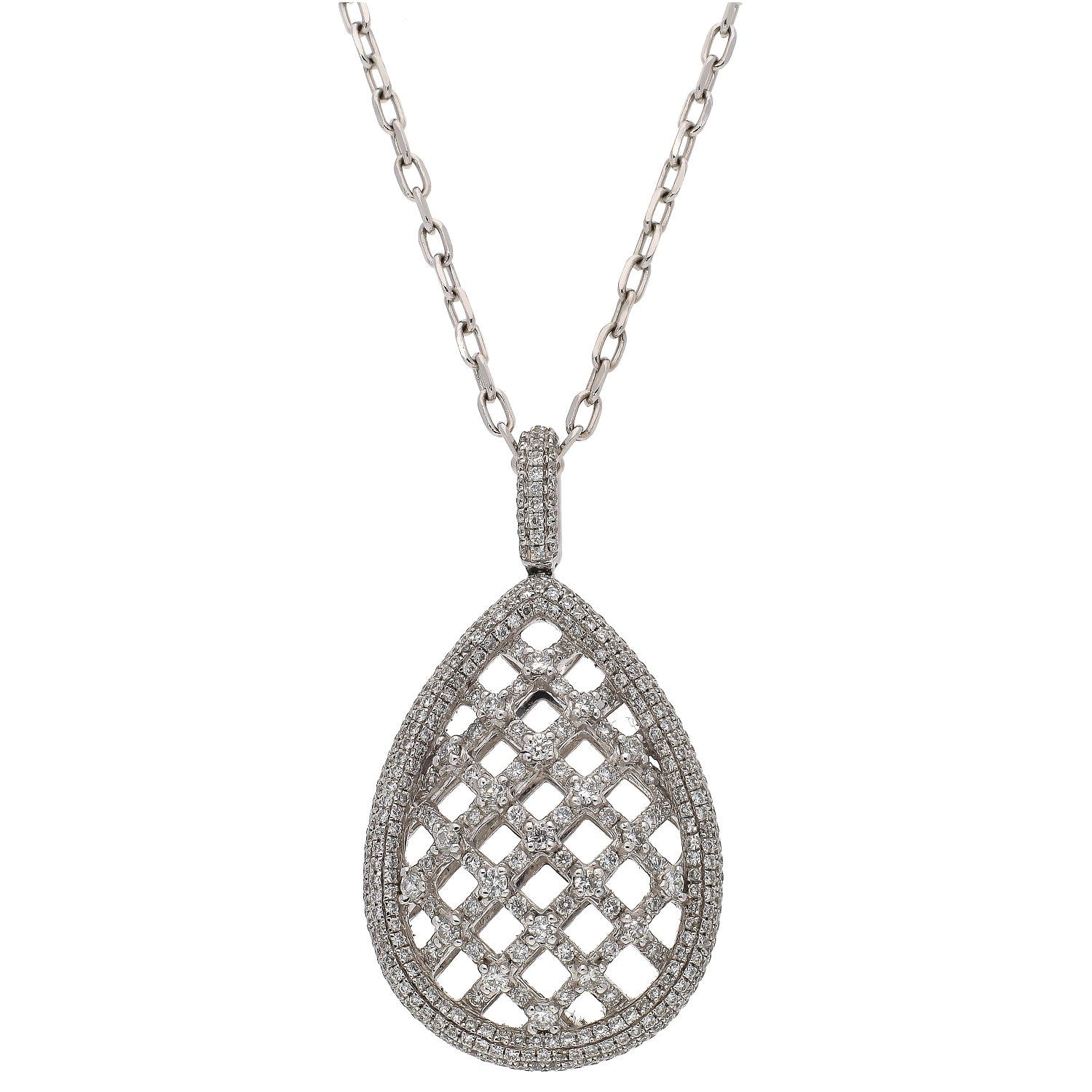 18K White Gold Teardrop Shape Diamond Pendant on 14K White Gold Paperclip Chain Necklace