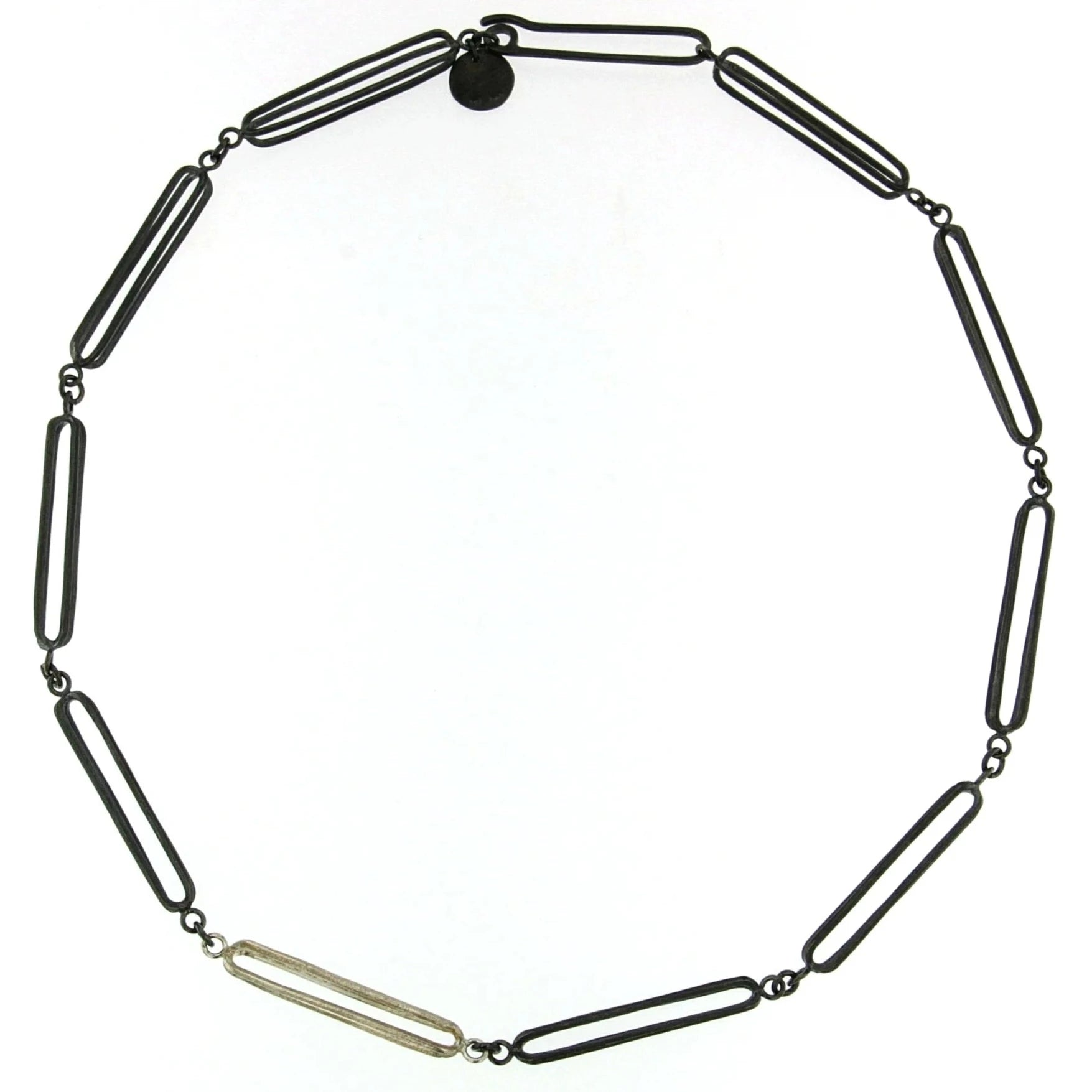 Mysterium Collection Sterling Silver and Oxidized Sterling Silver Oval Cage Necklace