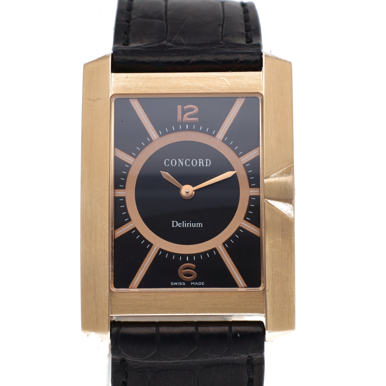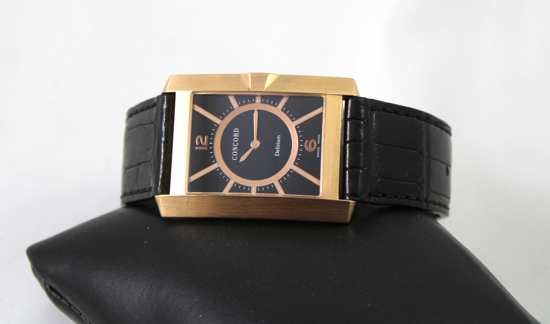 Concord Delirium Quartz 38mm x 28mm 18K Rose Gold Wristwatch with Black Leather Strap