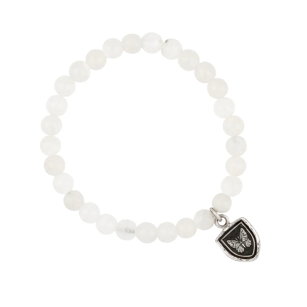 Pyrrha Sterling Silver "Ever Changing" Talisman White Jade Stone Stretch Bracelet
