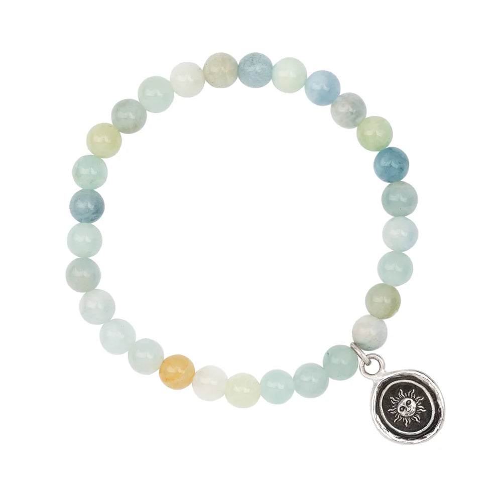 Pyrrha Sterling Silver "Joyful" Talisman Blue Aquamarine Stone Stretch Bracelet