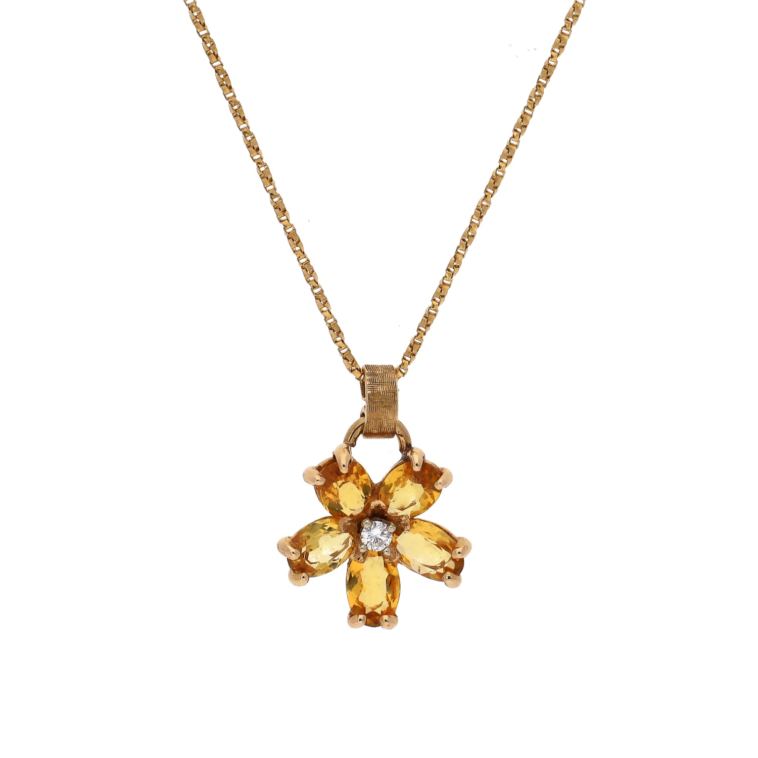 14K Yellow Gold Diamond and Citrine Flower Pendant