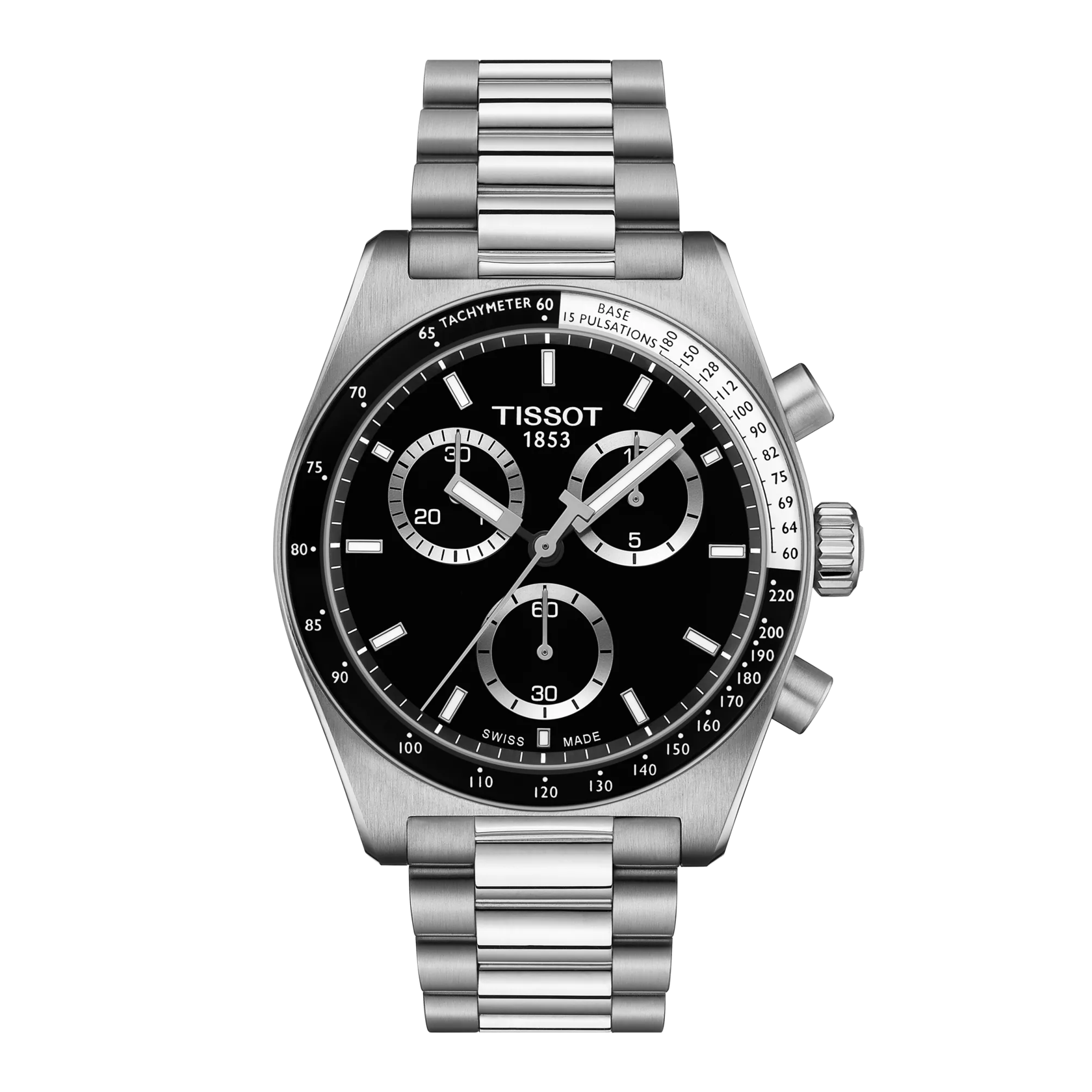 The Tissot PR516 Chronograph Quartz: a contemporary take on a cherished 1970 design. This watch showcases a sleek 40mm stainless steel case and a dynamic dial, embodying the spirit of speed and precision. Equipped with the Quartz G10.212 Powerdrive movement, it offers unmatched accuracy for the active lifestyle. The bezel features a practical tachymeter, while Super-LumiNova-coated indices ensure visibility in all conditions. Its versatile design is complemented by a domed stainless-steel bracelet with a quick interchangeable system, perfect for transitioning from business meetings to casual outings. The PR516 Chronograph Quartz is a modern classic, blending with Tissot's rich heritage.